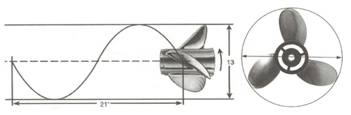 - Доступны винты с правым вращением и одна модель с левым вращением (диаметр 16", шаг винта 11") для "плавучих домов".