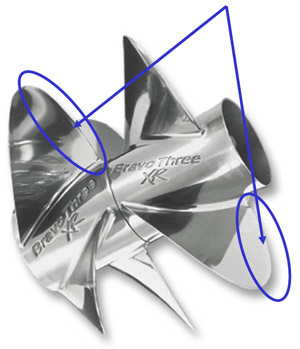 - За счет большего увода лопасти обеспечивает дополнительный подъем носа на тяжелых катерах со смещенным вперед центром тяжести с двигателями большой мощности.