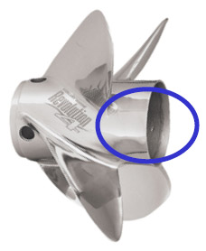- Винт для понтонов имеет специальный загнутый профиль задней кромки лопасти для предотвращения кавитации.