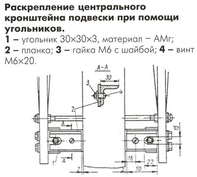 Подвеску двигателя можно оставить без изменения, но с обязательным раскреплением низа центрального кронштейна с двух сторон на упорной пластине (2.300.702).