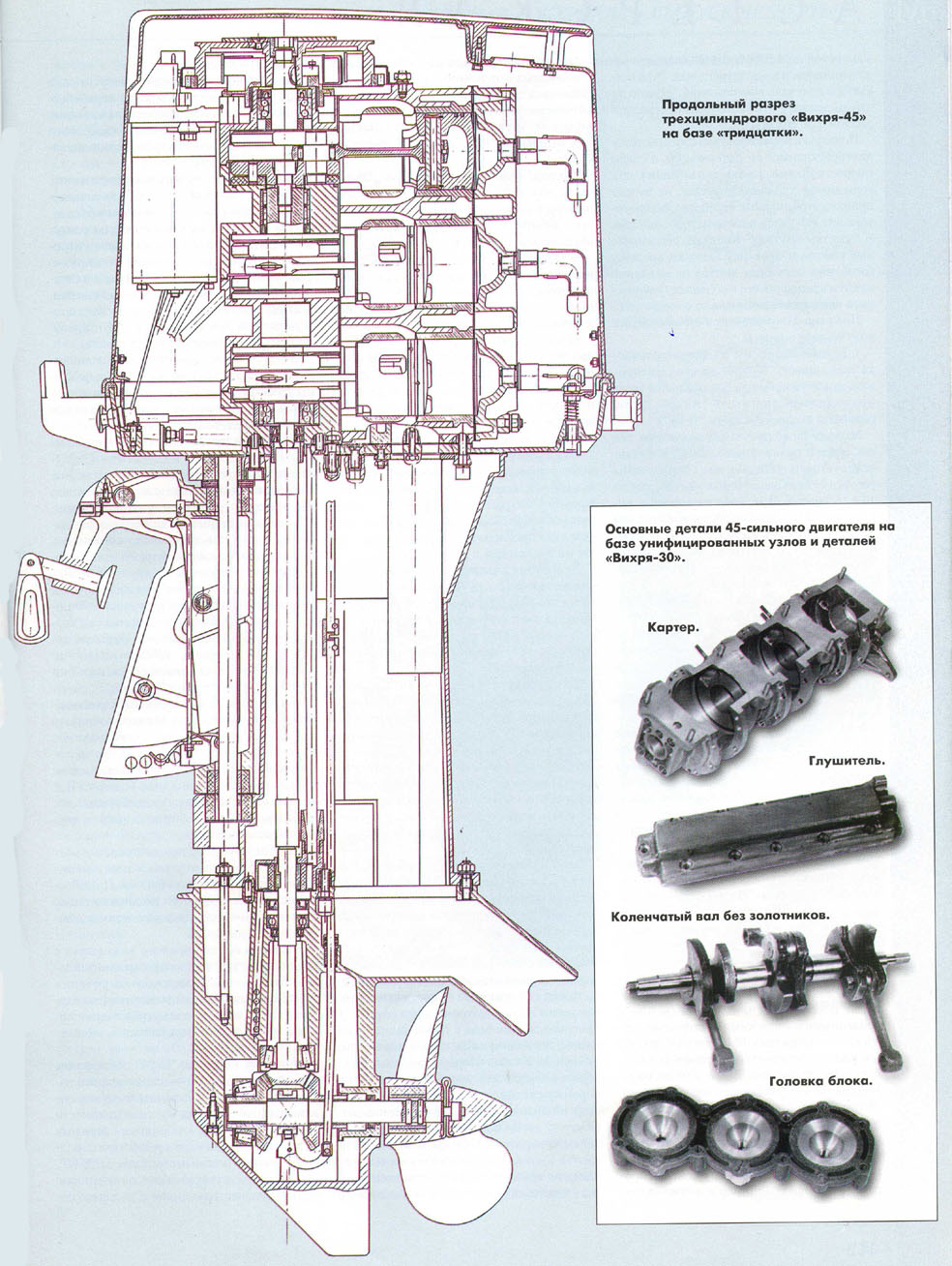 В трехцилиндровом "Вихре-45" применен целиком (с добавлением одного цилиндра) двигатель "Вихря-30", который прост в эксплуатации и ремонте,