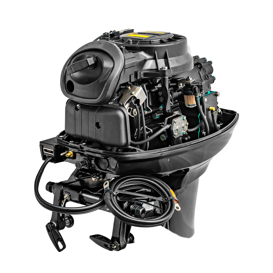 Лодочный мотор приводится в рабочий режим электростартером, также доступен ручной запуск.