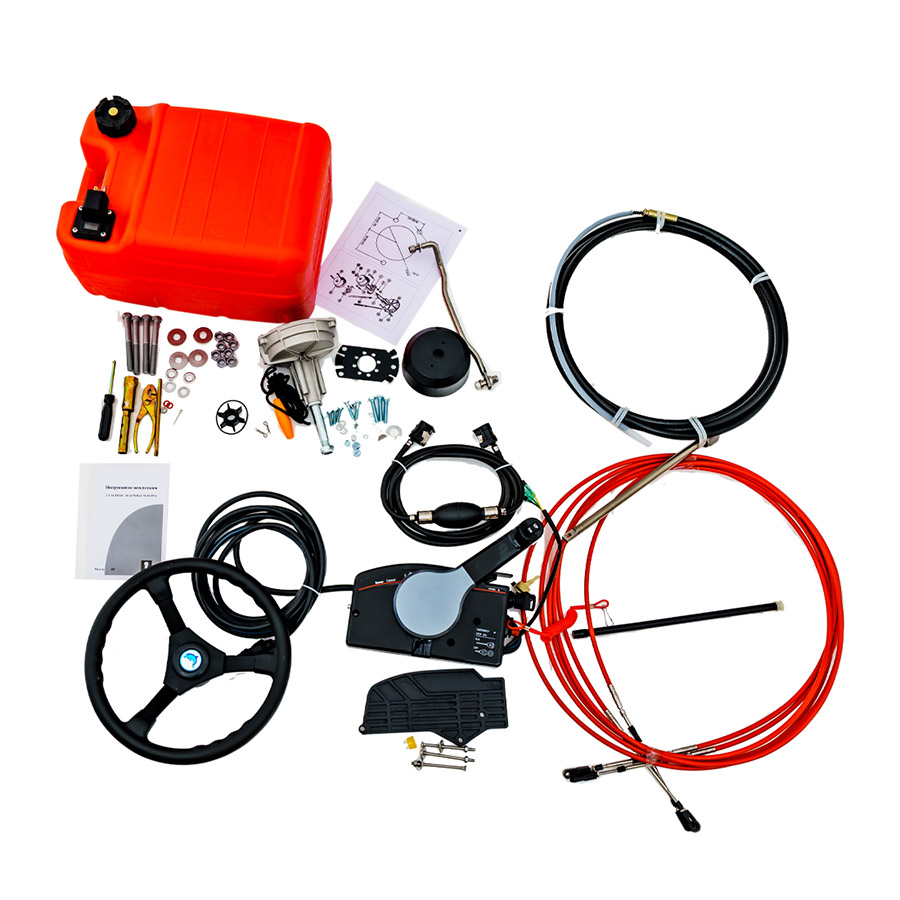 Двигатель поставляется с рулевым колесом, рулевым редуктором и тягой, рулевым тросом М66 3.8 метра (13ft), тросами газа/реверса C-2 3.8 метра (13ft),