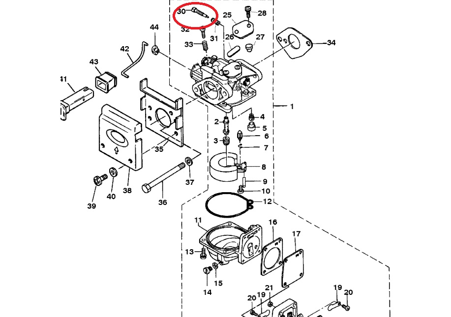 Здравствуйте. Возможно, после промывки сбита регулировка качества смеси на холостых оборотах. На схеме ниже, под номером 30 регулировочный винт.