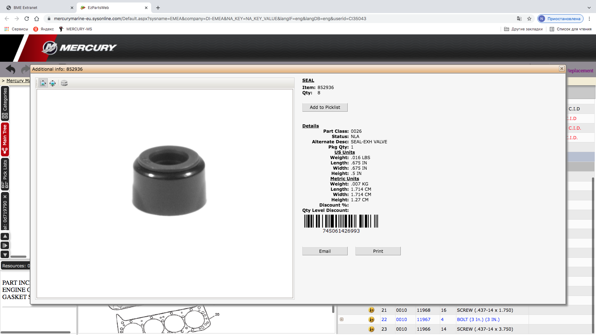 Здравствуйте! Mercruiser 5,0 1991 года. 0D719790. Маслоотражательные колпачки выпускных клапанов 852936 снчты с производства. От какого автомобильного мотора подойдут колпачки?